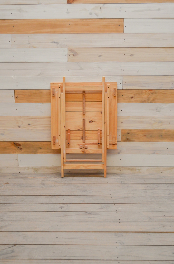 Mesa maciza sistema de patas tijera, reforzada. Cuenta con traba de cierre lo que la hace más práctica para su guardado o traslado.